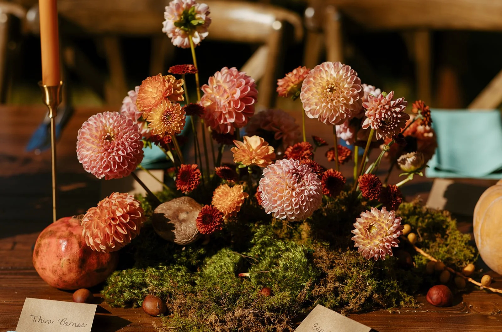 This amazing wedding was of my close friend Grace. She is an amazing floral designer! She planned everything, from getting all the local product to quantities on tables. We then packed everything into a U-Haul and drove it to Ellijay, GA. I hoped to make her vision come to life by creating a magical woodland wonderland where the wildlife wanted to visit, and where you will wake up swearing you saw fairies.